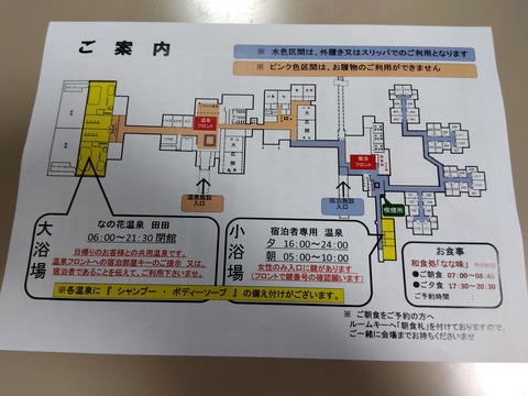 宿泊者専用小浴場へ向かうも16時からでした なので先に日帰り施設の大浴場に入ってから改めて小浴場へ。温泉のご案内。ちなみに客室のお風呂は温泉で···