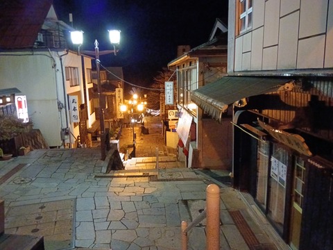 夕食後、せっかくなので夜の石段街を散策してみることに。昼間は暖かかったのに、夜になったら風が強くてものすごく寒いそして日中は観光客で大賑わい···